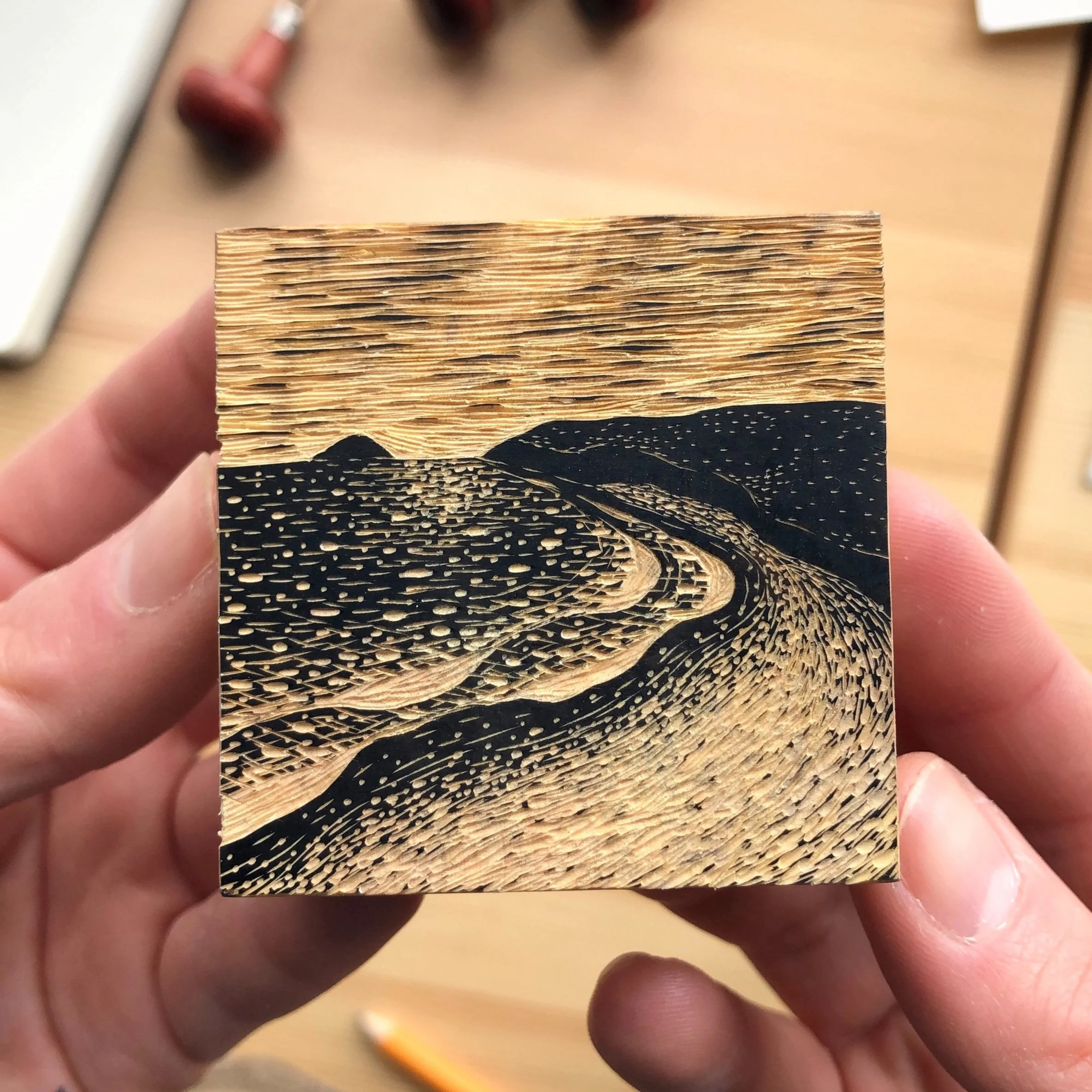 My prints are hand-printed from end-grain wood blocks.